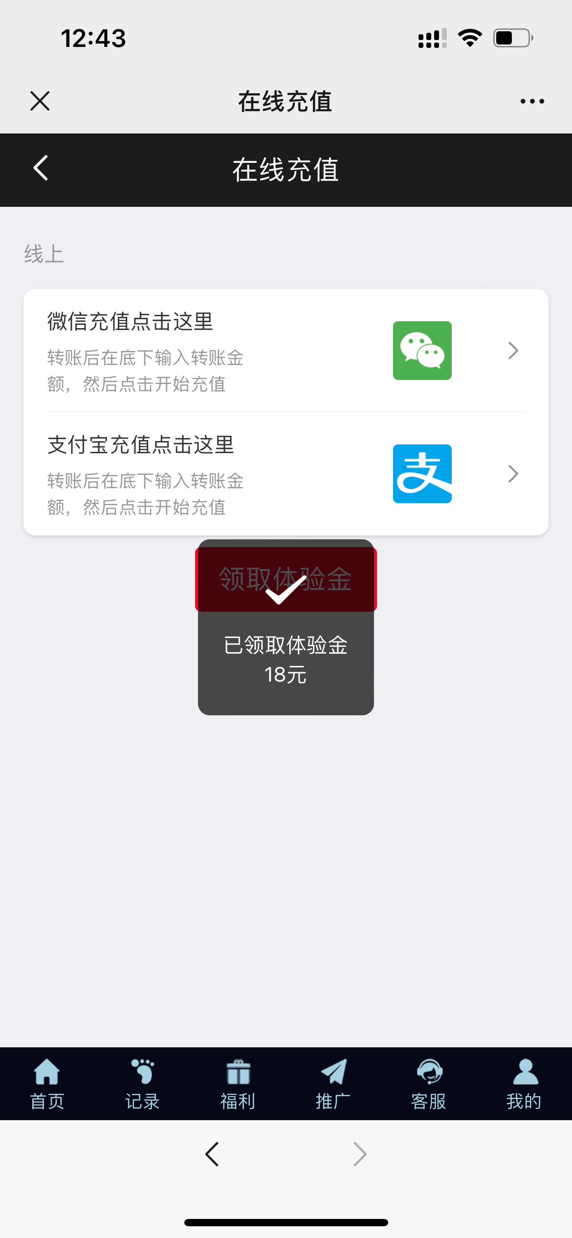 登陆直接点击充值领取18体验金秒到账