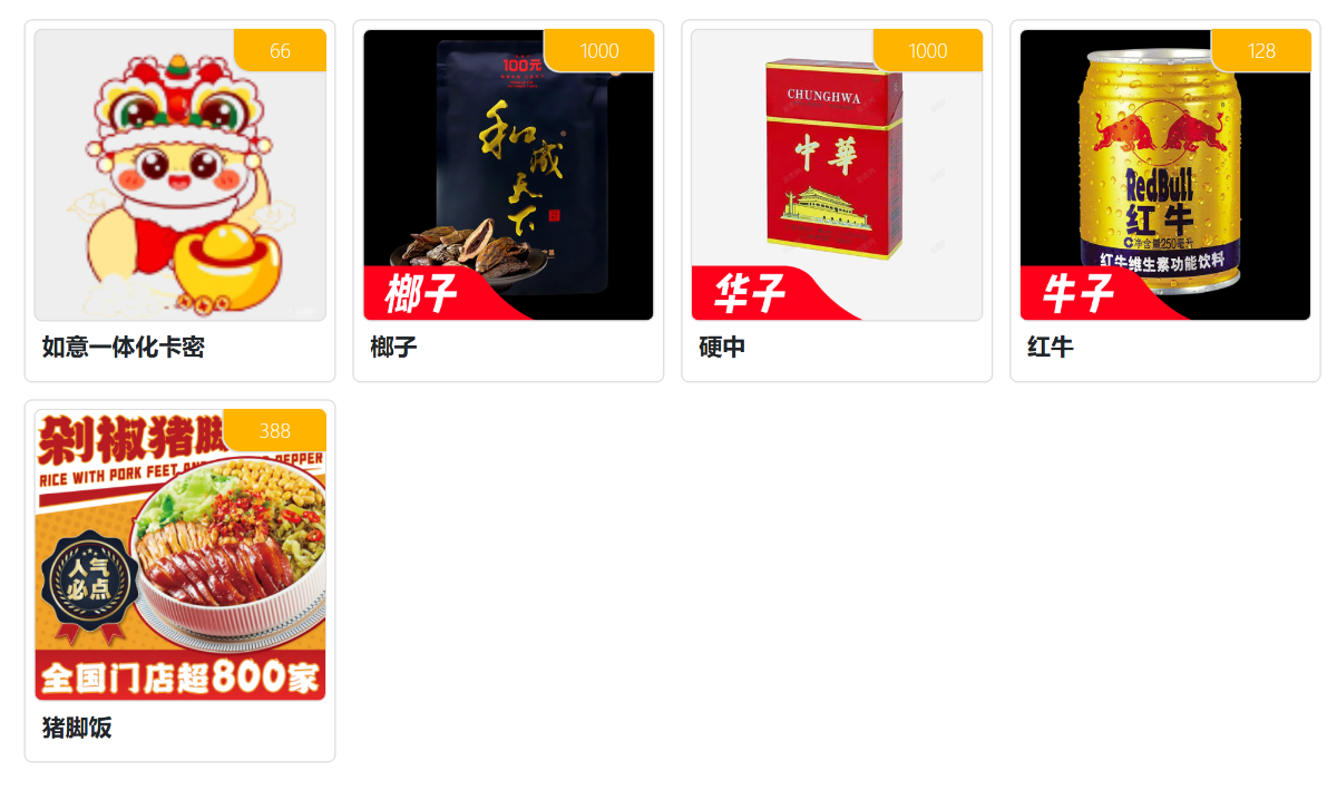- 可在商城兑换商品,如红牛[牛子]、猪脚饭[挂壁饭]、硬中华[华子]、100合成天下[榔子]等,后续将继续增加更多福利商品。