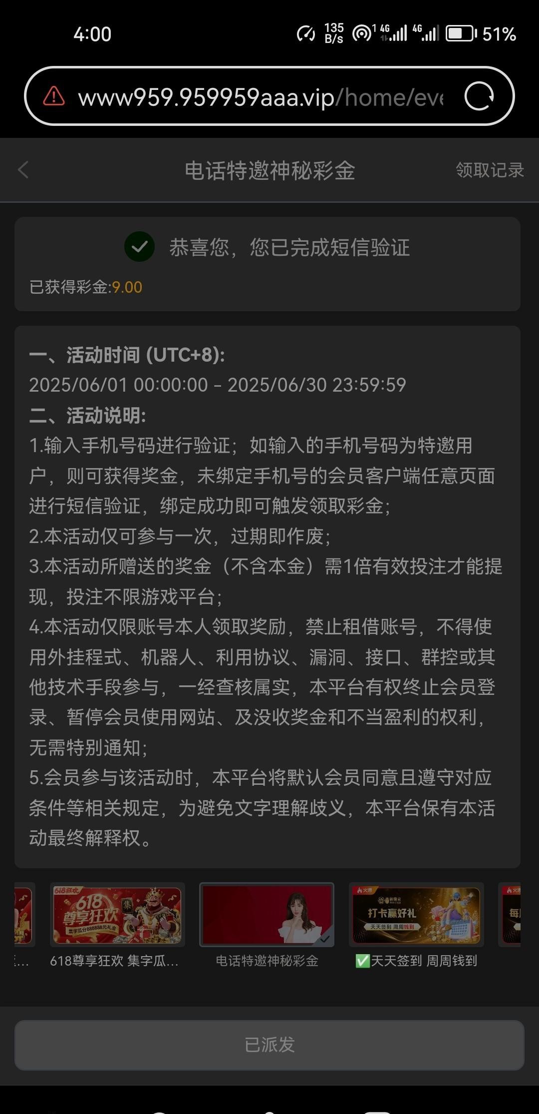 打电话来手机号注册上去就有9 网址是 959.com