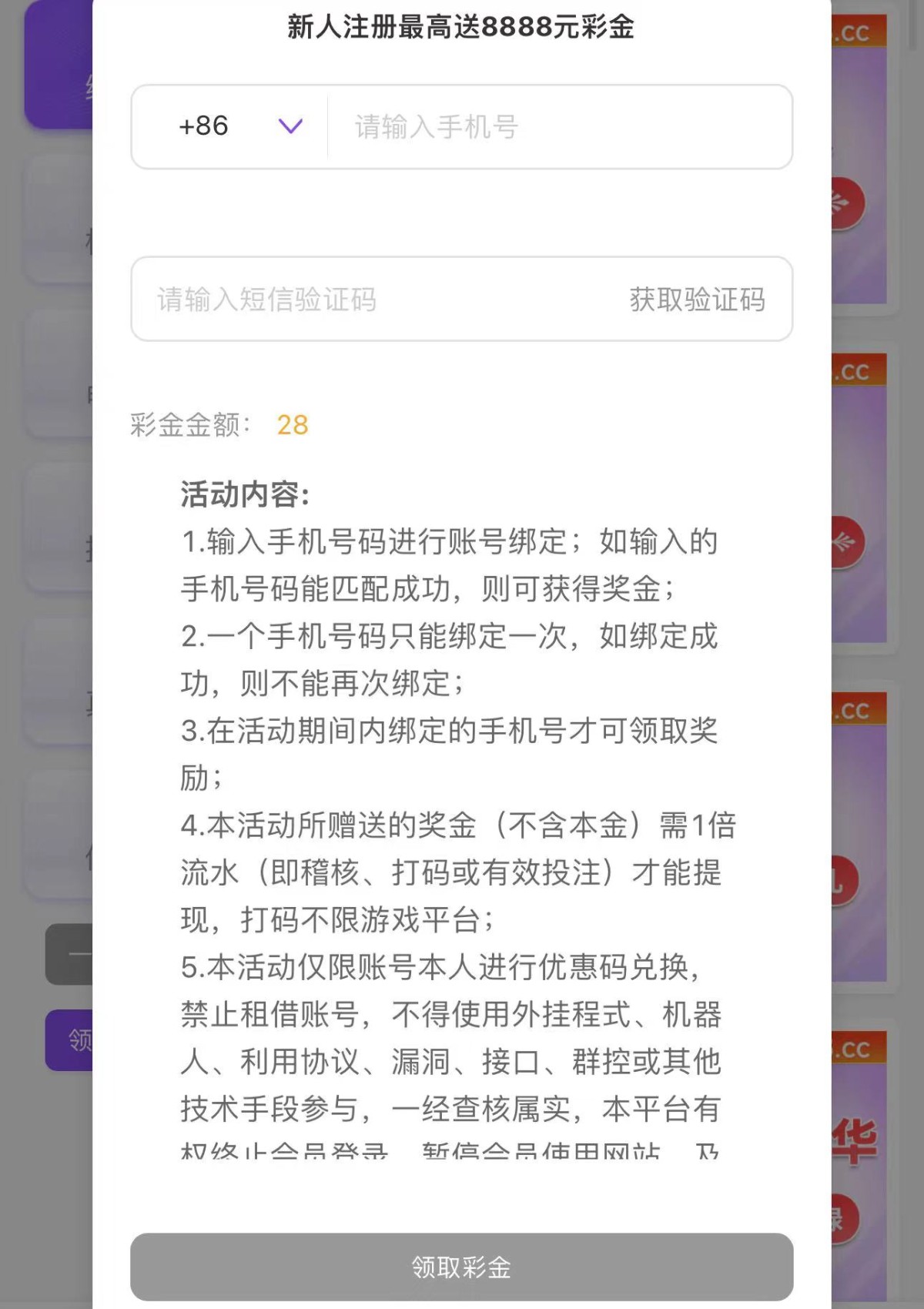 碰瓷特邀,注册后活动大厅自助申请新人金币